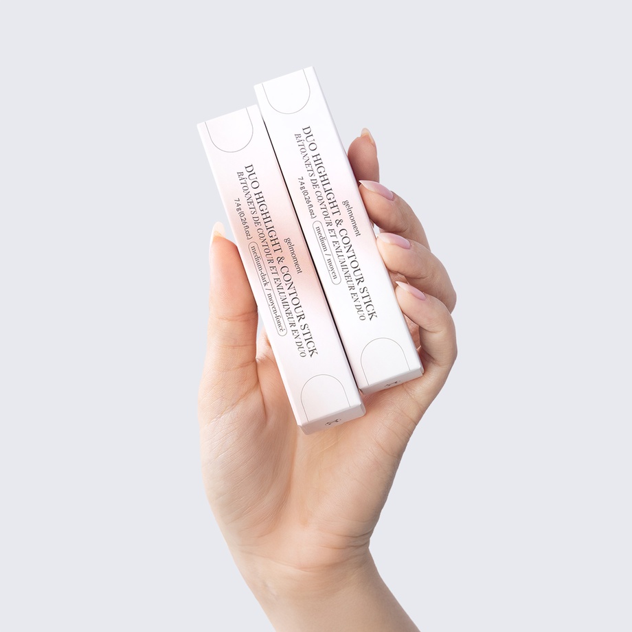 Our creamy contour & highlight duo are formulated to be lightweight and easily blendable using our “gelmoment brush”. Plus, our dual-sided applicator stick makes it easier than ever to use these complementary products together. Simply begin with the contour shade to add beautifully defined dimension to your face, then highlight to your heart’s content for a glowing finish.